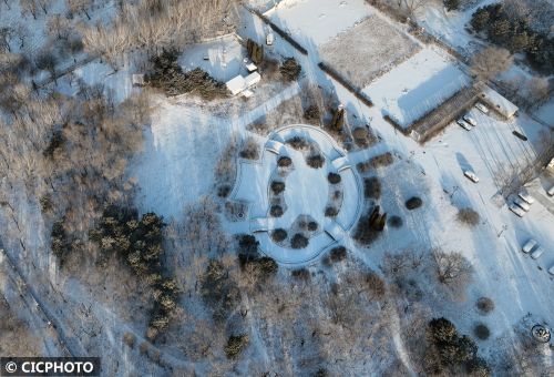↑2023年2月19日在辽宁省沈阳市皇姑区拍摄的雪景。(无人机照片)CICPHOTO/赵敬东 摄