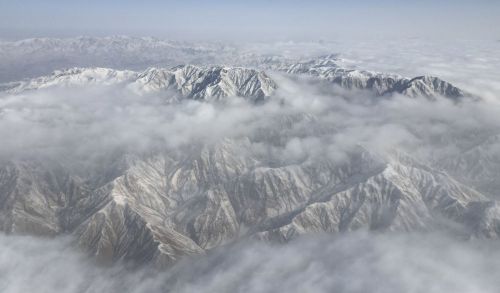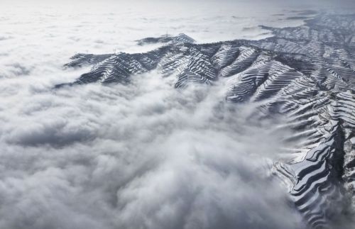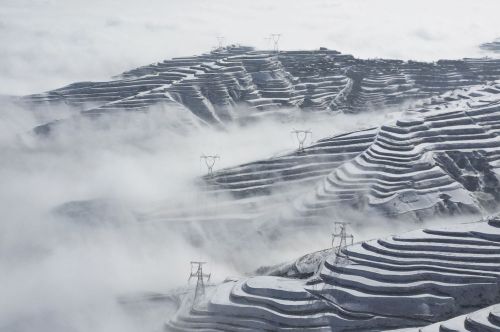 当日,雪后的甘肃省东乡族自治县山乡银装素裹,云雾缭绕,宛如仙境。