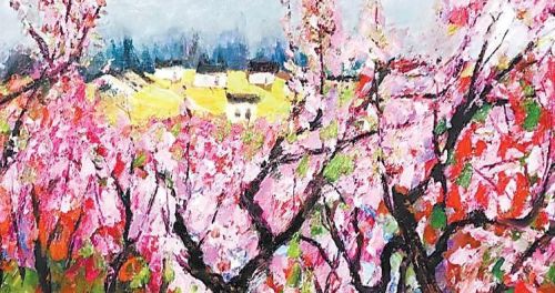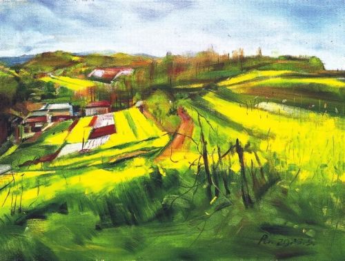 油菜飘香西坡新农村 (油画) 蒲晓康