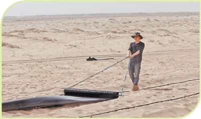 仲麟在沙漠进行覆膜滴灌实验。麻万星摄