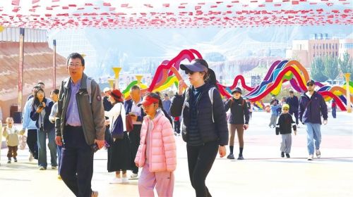 长假期间,围绕“黄河之滨也很美”主题,黄河楼、水墨丹霞与兰州中心(风起大汉)等多个商圈联动,打造日游+夜娱、文化+消费复合场景,推出29项互动活动,以“文旅+”融合推动消费升级。其中,水墨丹霞景区推出“丹霞的荔枝”古风巡演,游客可感受“自然奇观+文化演绎”的双重魅力,《舞马丹霞》演出28场,吸引1.22万观众。同时,伴手礼“带火”地方特色,兰州牛肉拉面、特色三炮台茶礼、黄河文化主题文创成为游客“必带清单”,地方特色产品与文旅消费深度融合,进一步释放假日消费潜力。