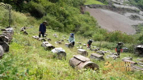 在舟曲县卧欧诺村,勤劳的中华蜜蜂是村民的致富好帮手。村民以空心木桩为蜂安家,蜜蜂则用甘甜的蜂蜜回报村民。